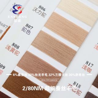 成分:6%桑蚕丝 32%丝光羊毛 32%兰精天丝 30%舒单丝